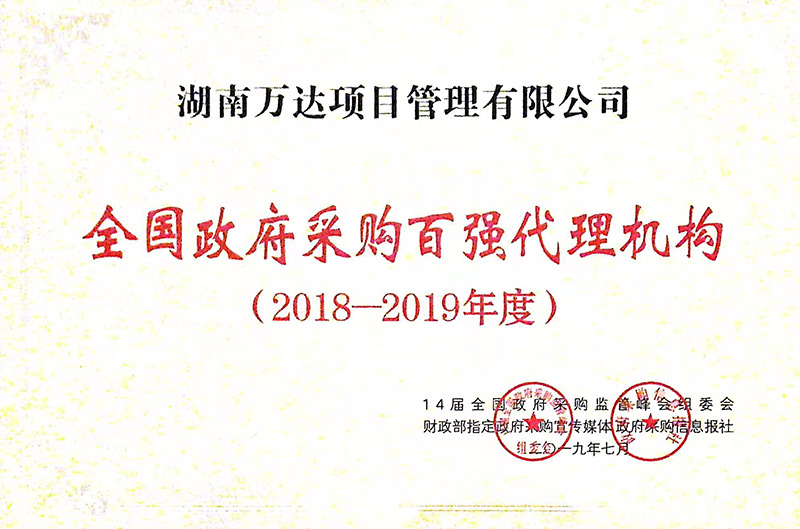 全國(guó)政府采購(gòu)代理2018-2019年度百?gòu)?qiáng)代理機(jī)構(gòu)