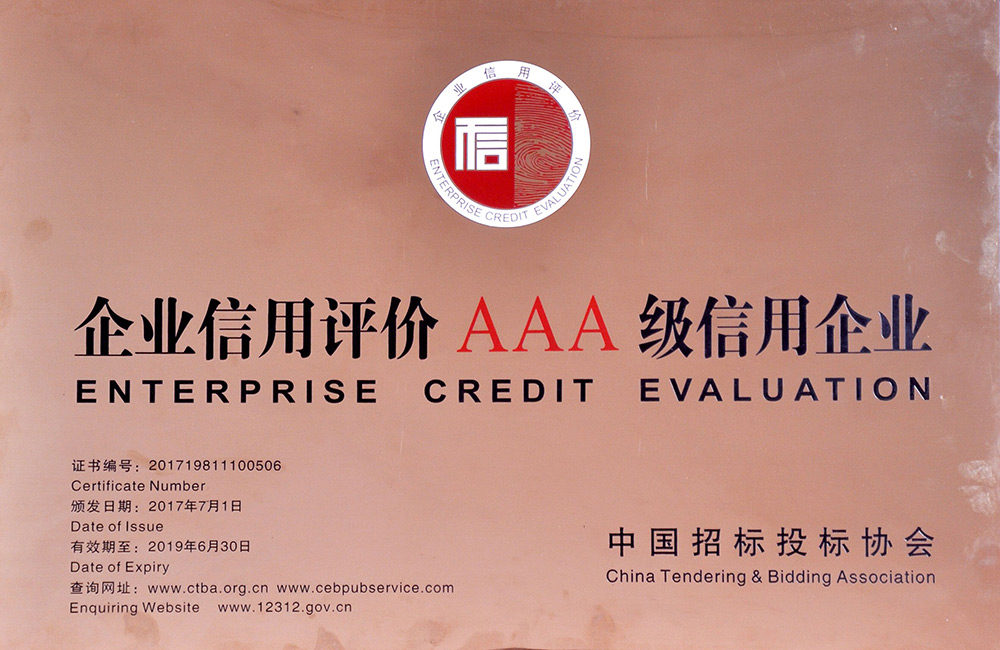 全國(guó)建設(shè)工程招標(biāo)代理企業(yè)AAA級(jí)誠(chéng)信等級(jí)