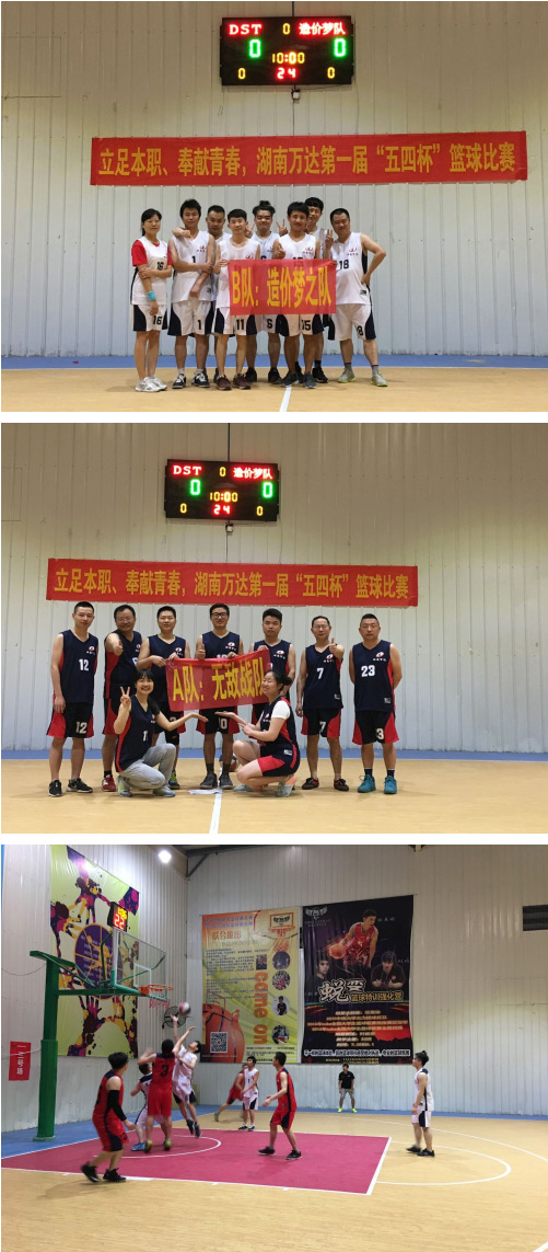 當(dāng)天天氣非常給力,籃球隊(duì)員們和拉拉隊(duì)成員個(gè)個(gè)都激情高昂,現(xiàn)場(chǎng)氣氛也異?;钴S,第一場(chǎng)比賽是“造價(jià)夢(mèng)之隊(duì)”和“DST戰(zhàn)隊(duì)”的對(duì)決,隨著裁判員一聲哨響,雙方隊(duì)員在此起彼伏的助威聲中,很快進(jìn)入狀態(tài),一幕幕精彩的場(chǎng)景在球場(chǎng)上演,幾次精彩的灌籃,構(gòu)成了一幅幅激動(dòng)人心的畫面。大家雖然在場(chǎng)下是親密無間的同事、但在球場(chǎng)上卻是你爭我趕,不放過任何一個(gè)得分的機(jī)會(huì),在大家期盼的目光和友誼的鼓勵(lì)吶喊聲中,經(jīng)過30分鐘的艱苦鏖戰(zhàn),最后以1分之差“DST戰(zhàn)隊(duì)”驚險(xiǎn)獲勝。