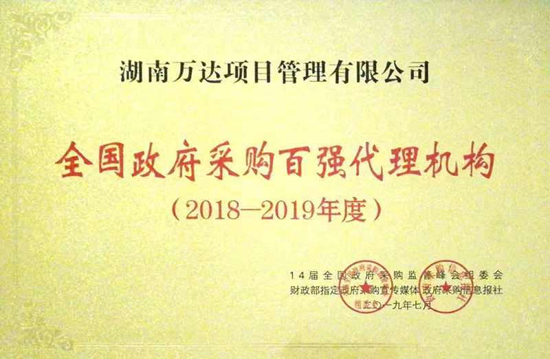 7月27日,14屆全國政府采購監(jiān)管峰會在呼和浩特市隆重召開。會上,我司被授予“全國政府采購百強代理機構(gòu)”稱號。