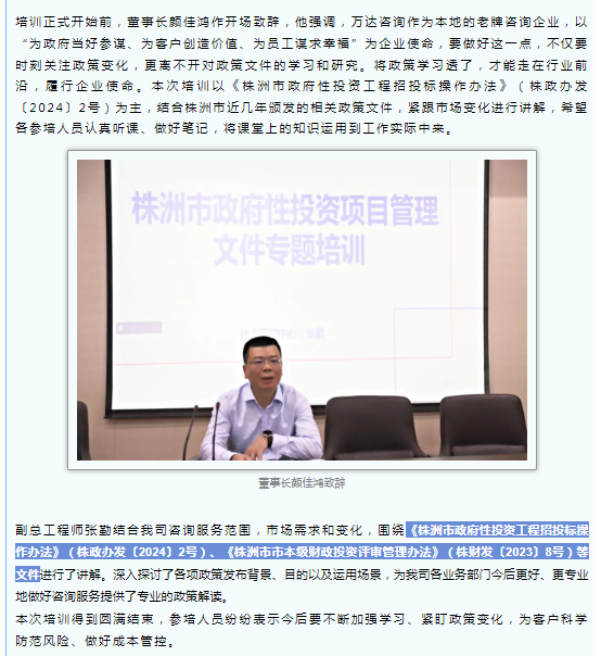 湖南萬(wàn)達(dá)開(kāi)展株洲市政府性投資項(xiàng)目管理文件專(zhuān)題培訓(xùn)